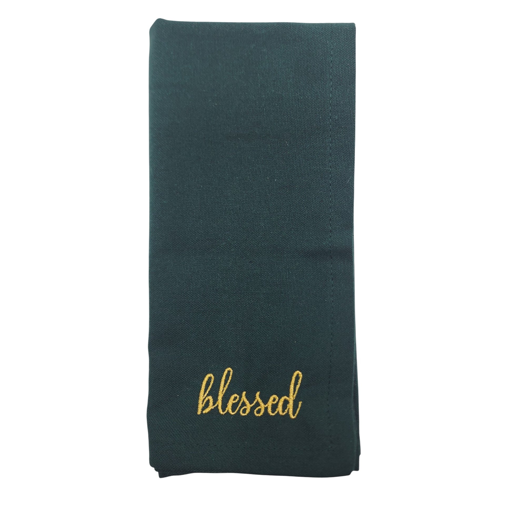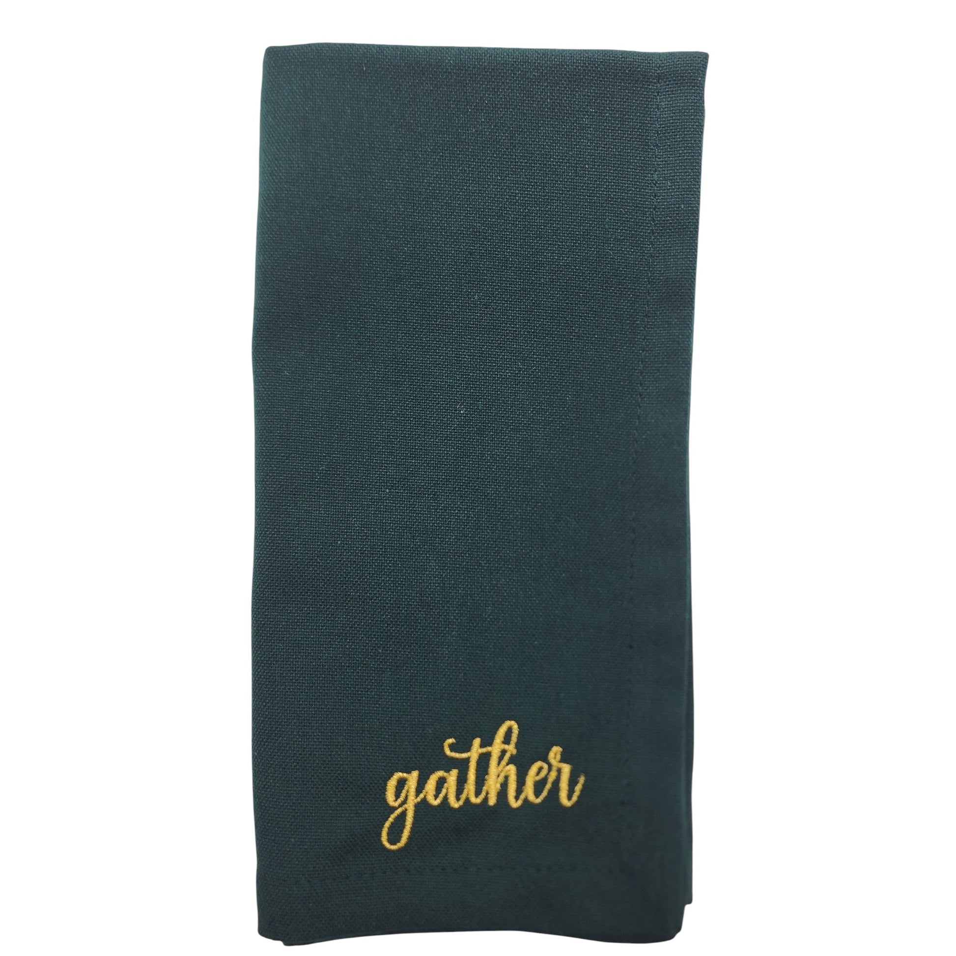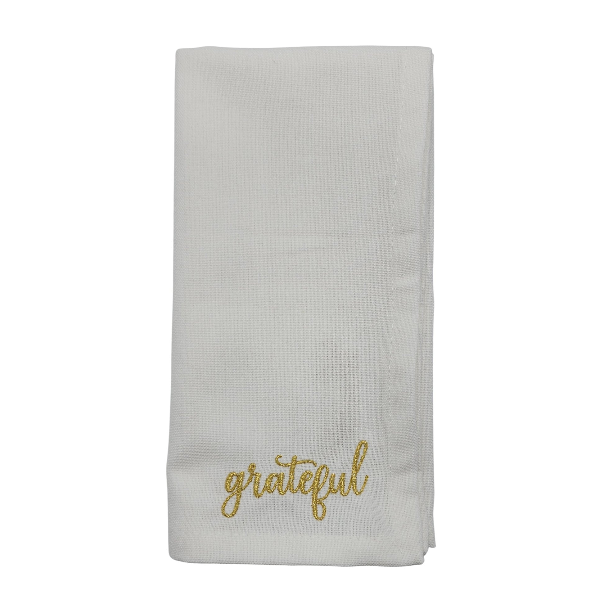 Elevate your Thanksgiving table with these refined cotton dinner napkins, thoughtfully embroidered with meaningful fall sentiments. Each napkin features elegant script showcasing words like "grateful," "blessed," "thankful," and "gather"—perfect for setting an intentional, warm tone for your holiday gathering. Crafted from quality cotton, these napkins combine practicality with understated sophistication, making them ideal for both everyday autumn entertaining and special seasonal occasions. A timeless addition to your table linens that celebrates gratitude and togetherness.