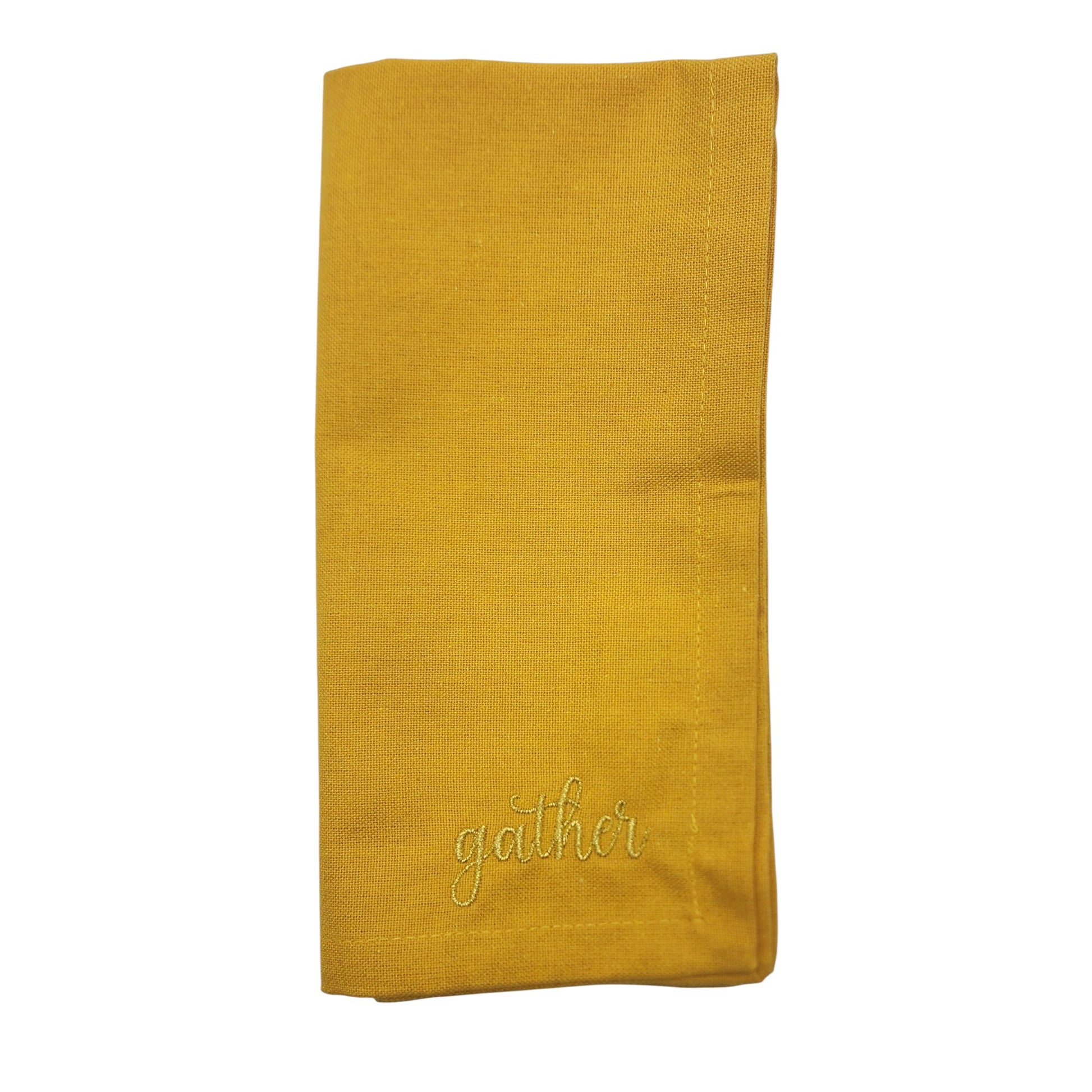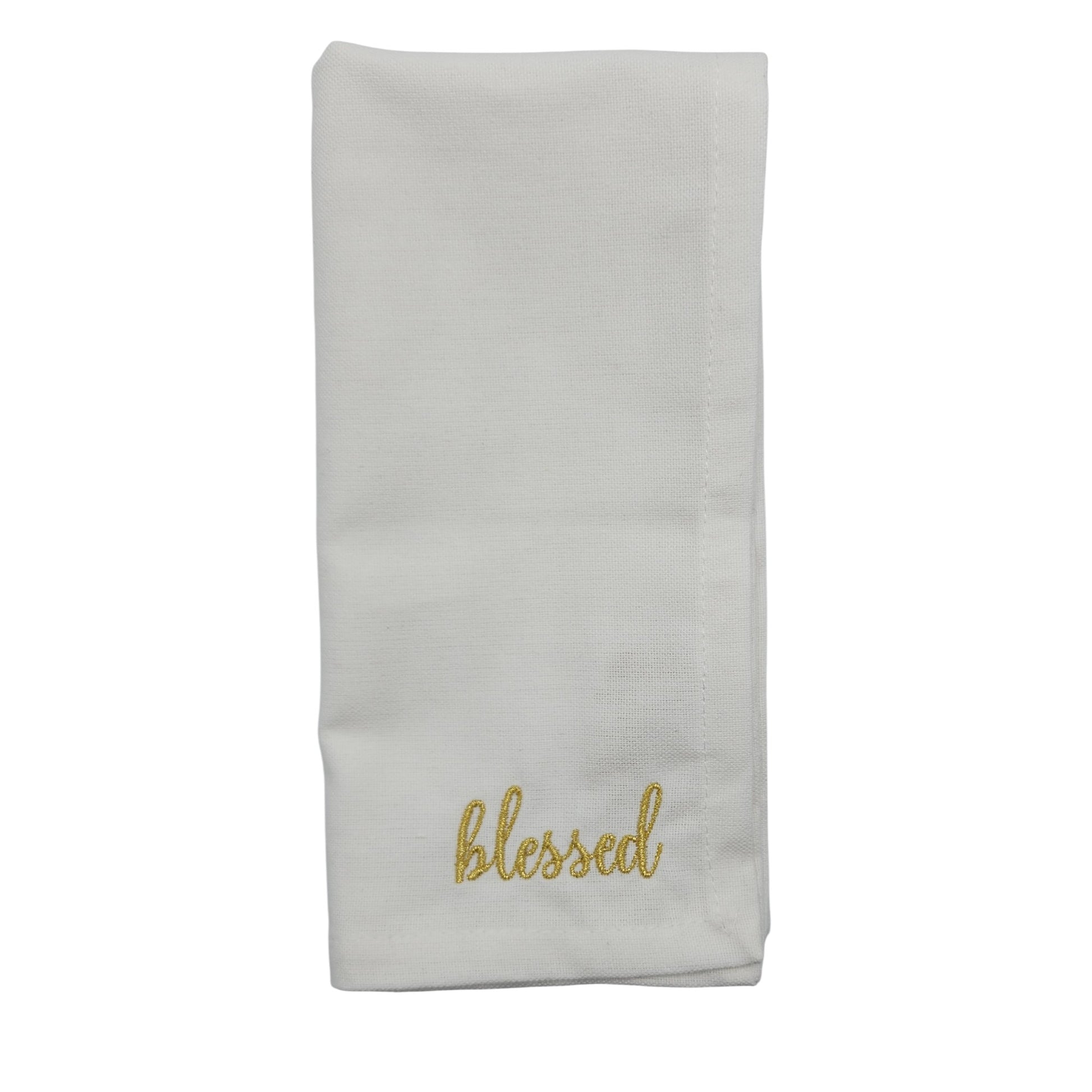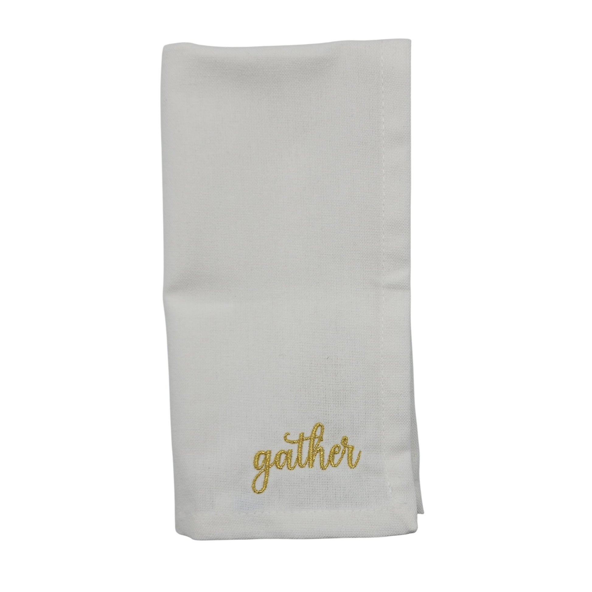 Elevate your Thanksgiving table with these refined cotton dinner napkins, thoughtfully embroidered with meaningful fall sentiments. Each napkin features elegant script showcasing words like "grateful," "blessed," "thankful," and "gather"—perfect for setting an intentional, warm tone for your holiday gathering. Crafted from quality cotton, these napkins combine practicality with understated sophistication, making them ideal for both everyday autumn entertaining and special seasonal occasions. A timeless addition to your table linens that celebrates gratitude and togetherness.