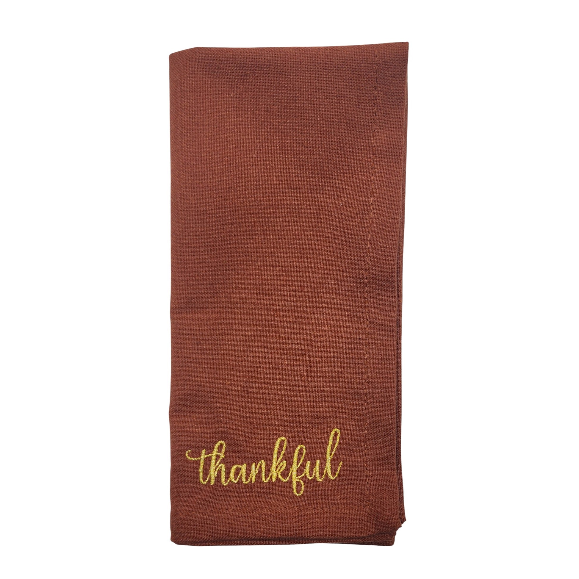 Thanksgiving Sentiments Embroidered Cotton 18x18 inch Dinner Napkins
