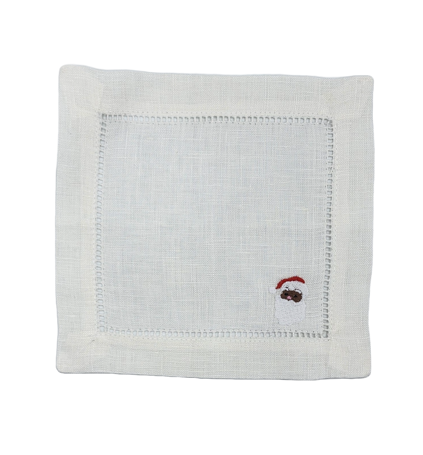Santa Claus Embroidered Linen Cocktail Napkin