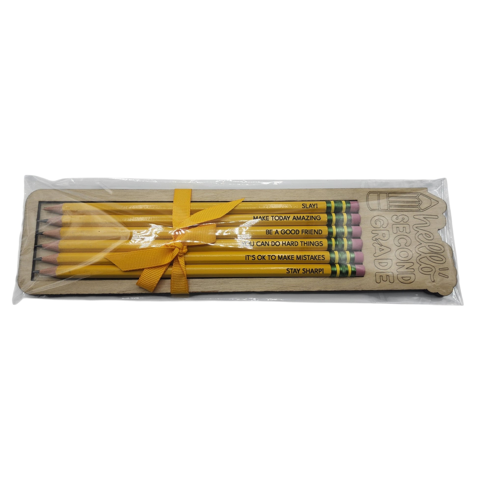 Start the school year with a smile using these TICONDEROGA 6 Pack Engraved Pencils. Each classic yellow pencil features cheerful words of encouragement to boost confidence and fun while you write. Perfect for students ready to tackle homework and doodle with a little extra inspiration! Arrives gift ready!